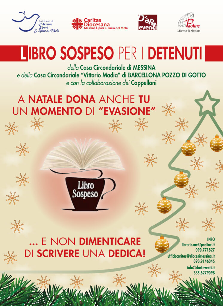 Parte da qui l’idea del libro sospeso. Dopo il successo riscosso a Brescia, Napoli, Udine, Lodi, Novara e Palermo, questa iniziativa arriva anche nella Libreria Paoline di Messina condivisa insieme alla Caritas dell’Arcidiocesi di Messina, all’associazione D’arteventi e ai Cappellani della casa circondariale di Messina e di Barcellona Pozzo di Gotto.